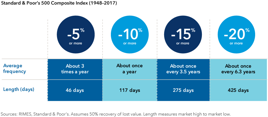 Below are illustrative images showing the frequency of market corrections and the typical rebounds that follow: